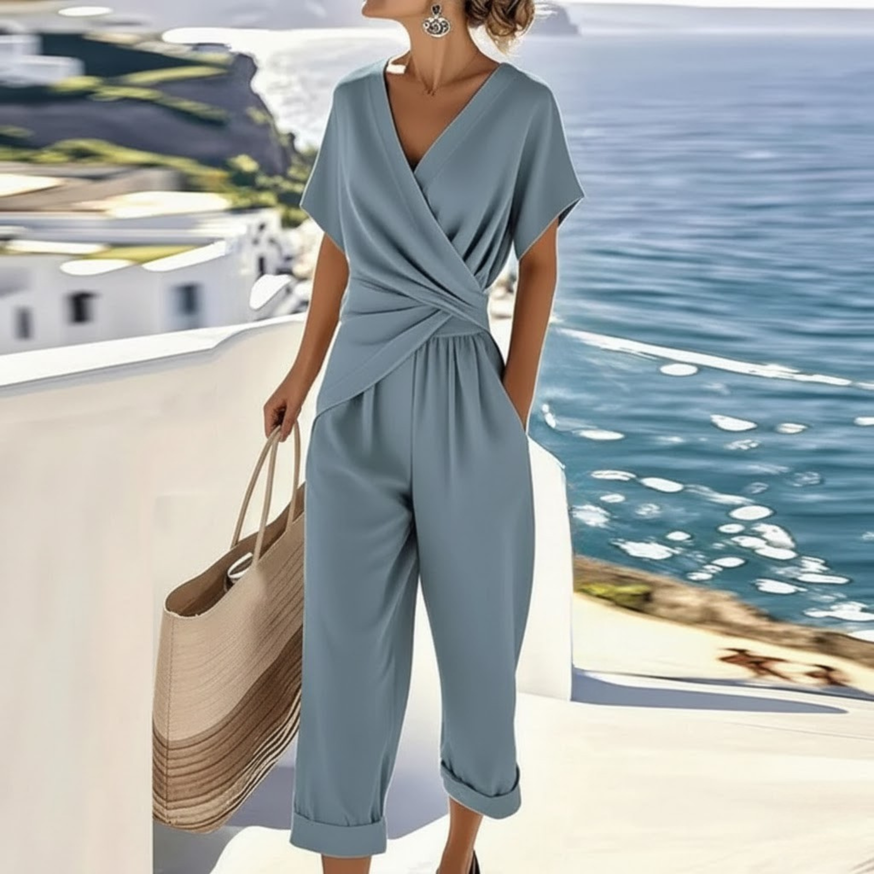 Made from premium, breathable fabric that feels gentle on the skin. The top drapes beautifully over the waist, and the trousers create a smooth, flattering line that celebrates your natural shape.